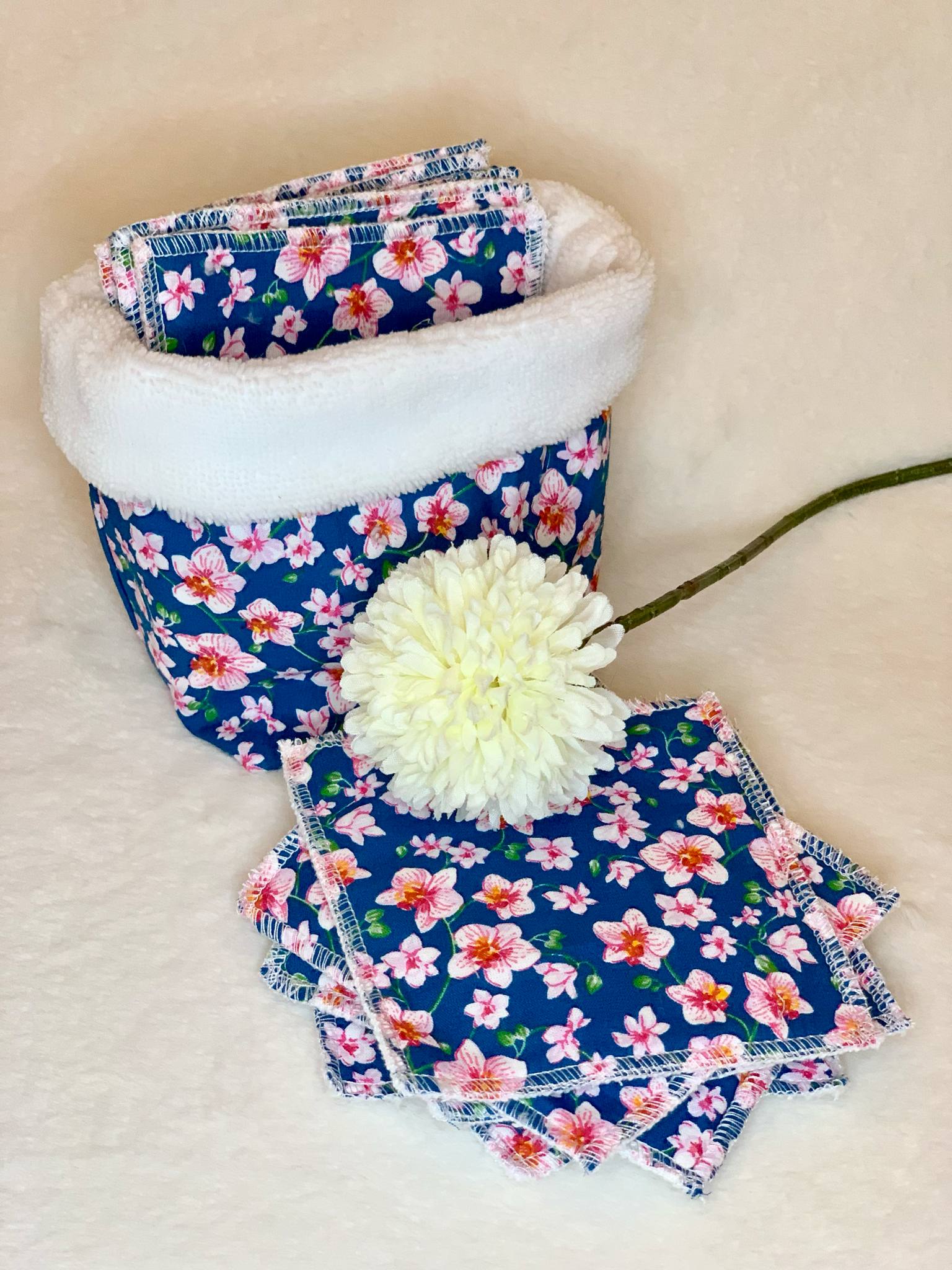 Adoptez une routine éco responsable tout en douceur avec les lingettes lavables faites main accompagnées de leur jolie panière assortie.
