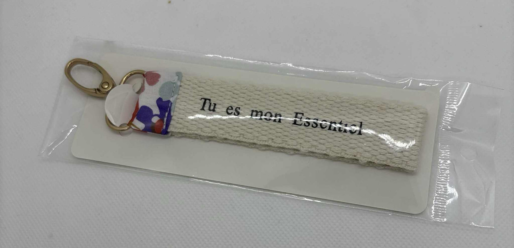Apportez une touche d'originalité et de poésie à votre trousseau avec ce porte - clés en tissu orné de l'inscription inspirante "Tu es mon essentiel" !